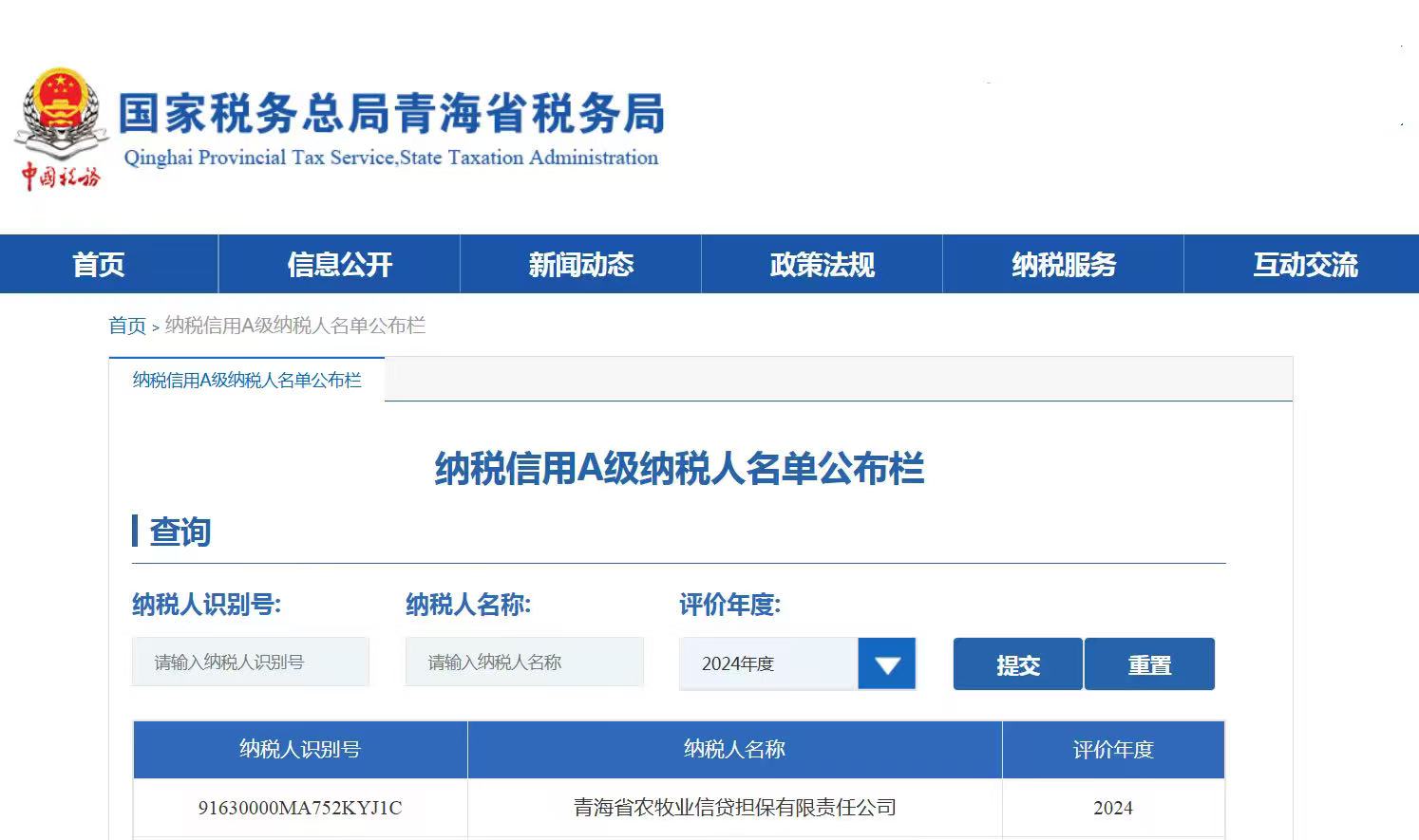 近日,青海農擔公司再次獲評“納稅信用 A 級納稅人”,這是稅務部門對納稅信用的最高等級認定,同時也彰顯了公司作為省屬國有政策性非銀行類金融機構,在推動地方經濟社會發(fā)展中積極履行社會責任的擔當。